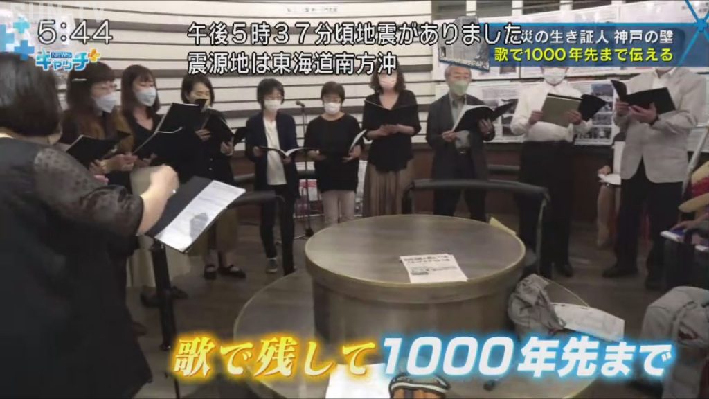 たとえ命が尽きても歌を残して1000年先まで伝える。三原さんの思いに賛同した神戸市役所センター合唱団が神戸の壁の歌を歌いました。