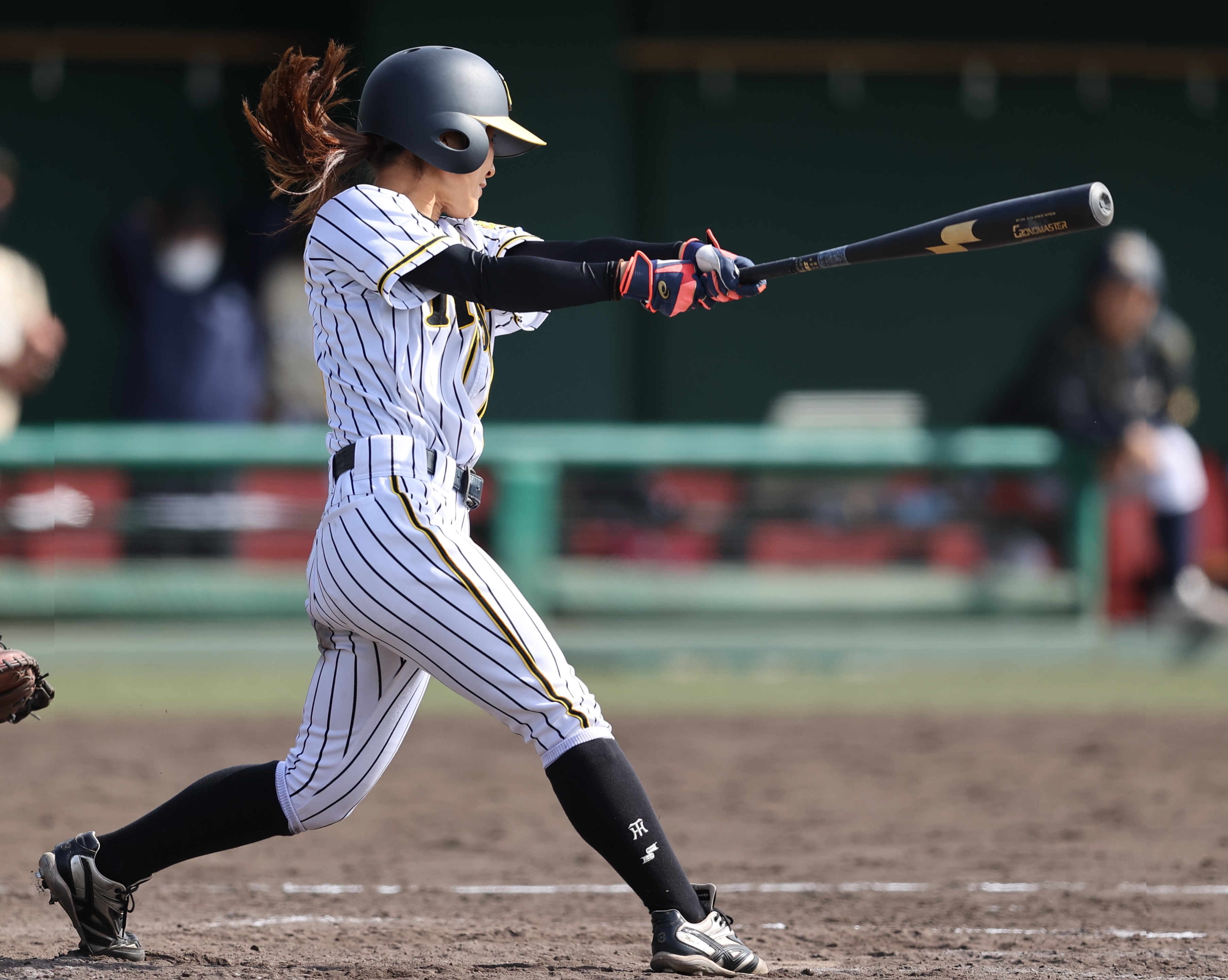 • タイムリーを放つ 3三浦伊織/阪神タイガースWomen提供