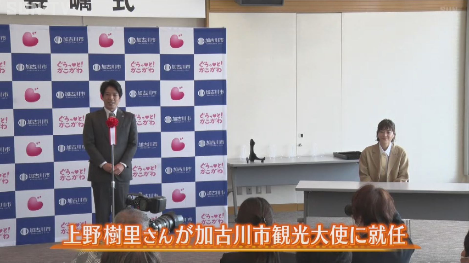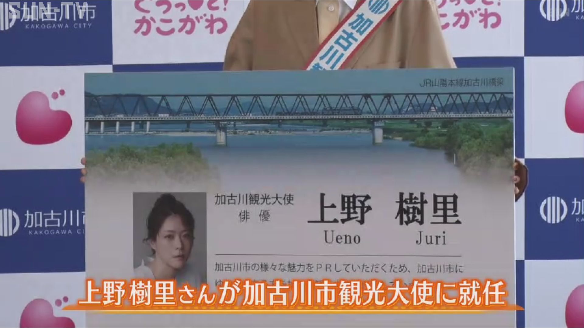 上野樹里さん 加古川観光大使に就任 2021.12.2619:23 地域・まち 加古川市出身の俳優上野樹里さんが地元の観光大使に任命され、21日、委嘱式が開かれました。 俳優の上野樹里さんは兵庫県加古川市出身の35歳、映画やドラマ、CMなどで幅広く活躍しています。 観光大使の任命式が開かれ、岡田市長から委嘱状が手渡されたほか市の特産品や巨大な観光大使の名刺が贈られました。 このあと上野さんは岡田市長らと対談し、子どもの頃JR加古川駅前の商店街を自転車で駆け回っていたことなどを紹介していました。 上野さんは今後の活動の中で加古川市の魅力を発信していくということです。 #上野樹里 #加古川観光大使 記事のギャラリーを見る ニュース一覧へ戻る