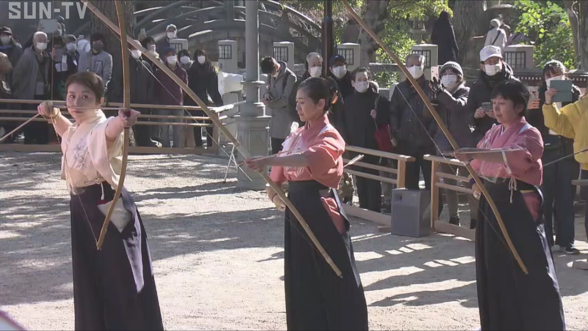 新たな年の福を願って 西宮神社で「奉射事始祭」 2022.01.0218:18 地域・まち 文化・スポーツ 「えべっさん」の総本社として知られる西宮神社では、新年の福を願って弓を射る恒例の行事が行われました。 兵庫県の西宮神社で開かれた奉射事始祭(ほうしゃことはじめさい)は、開運や商売繁盛を祈り弓を射る行事で、およそ30メートル離れた的に悪霊を払う力があるとされる鏑矢が放たれました。 その後、地元の弓道協会の会員たちが弓の腕前を披露し、初詣に訪れた人たちからは歓声が上がりました。 西宮神社では1月10日に行われる「福男選び」が2年連続で中止となり、神事のみが執り行われます。 #奉射事始祭 #西宮神社 記事のギャラリーを見る ニュース一覧へ戻る