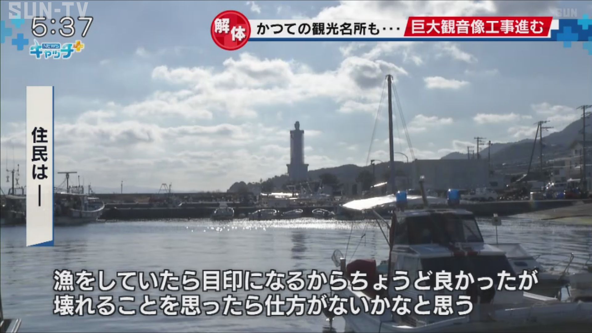観音像は、1982年に観光スポットとして建てられましたが老朽化が進み、壁の一部が落下するなどして危険なため去年3月に国の所有となり、6月から解体工事が始まりました。