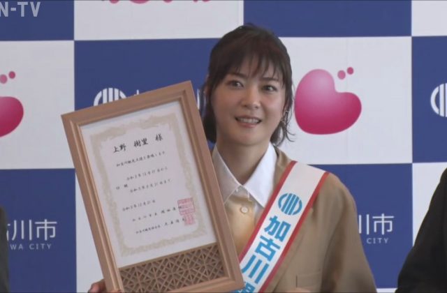 16日は子どもたちが参加する将棋イベントの会場で加古川観光大使の任命式が開かれ、岡田市長から横山さんに委嘱状が手渡されたほか大使の名刺なども贈られました。