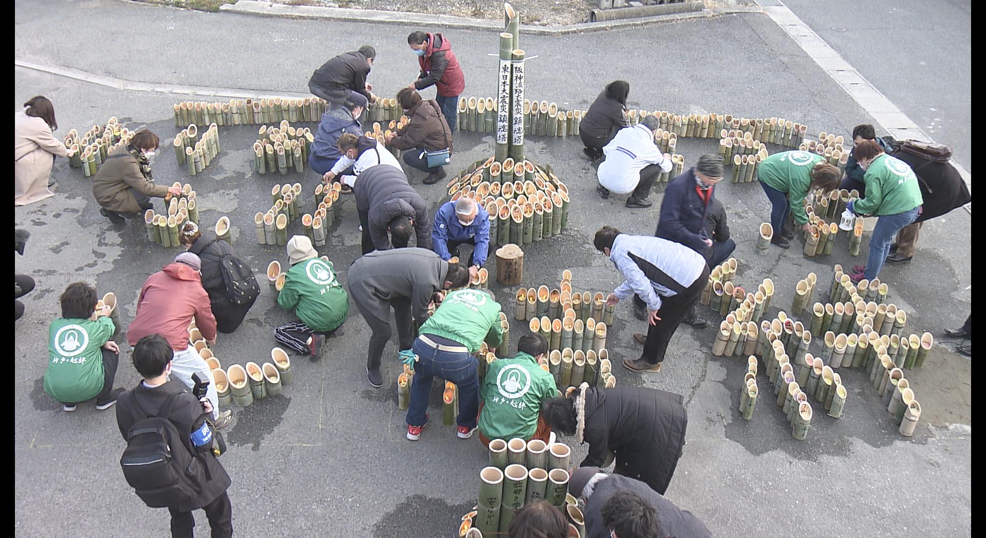 追悼行事では1.17と3.11それに「心・結・絆(こころむすぶきずな)」の文字に並べられたおよそ1000本の竹灯籠に火を灯し、東日本大震災が発生した午後2時46分に黙とうが捧げられました。