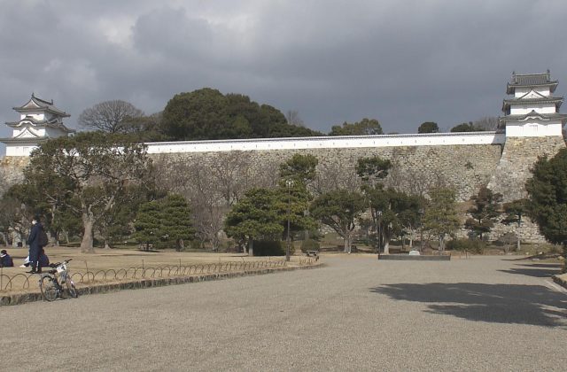 県立明石公園では明石城の築城400年を機に石垣の保全や歴史的景観の向上を目的に樹木の伐採を行っています。