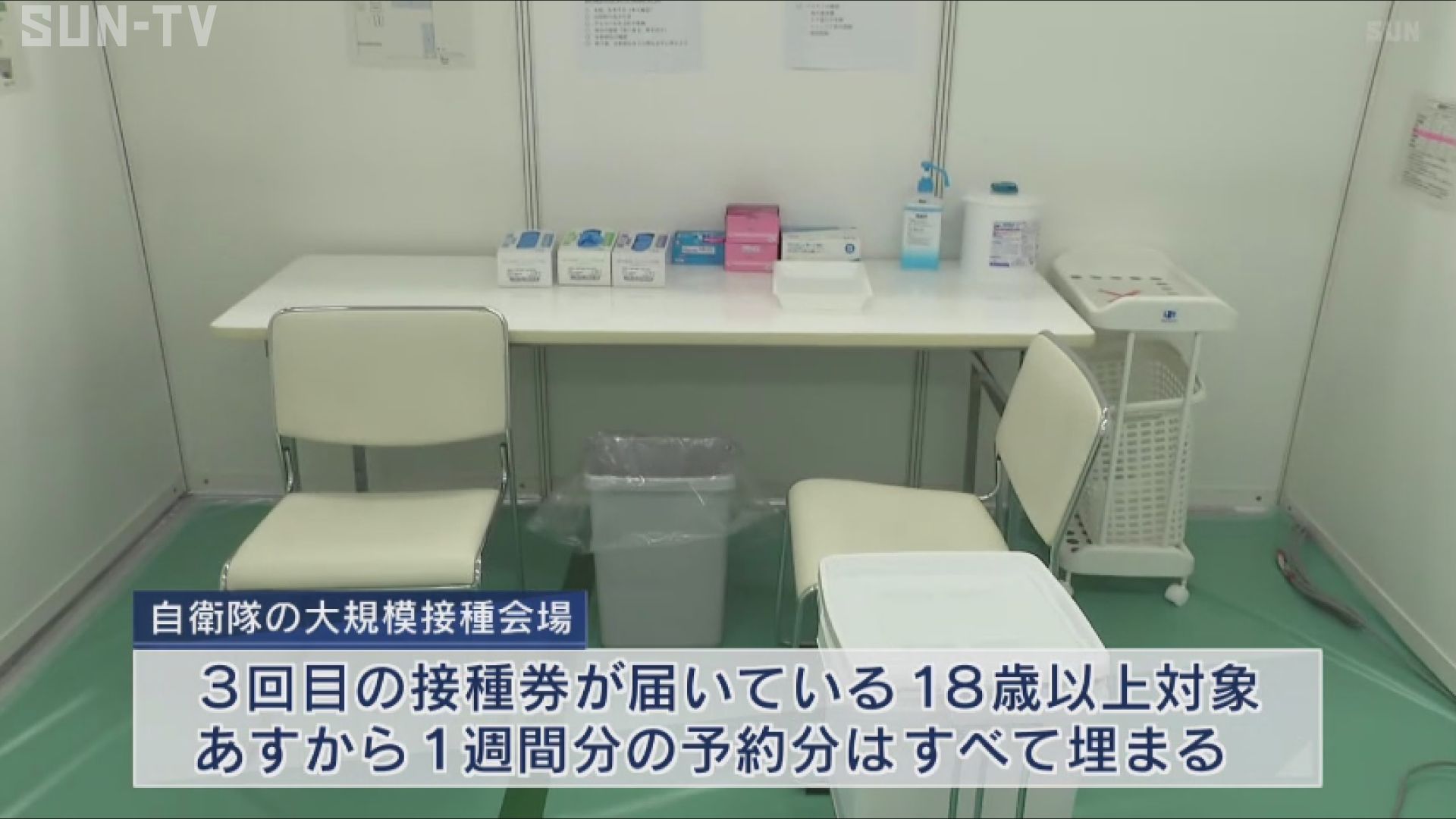 対象は自治体から3回目の接種券が届いている18歳以上で、1日当たり960人の接種を行います。 なお、7日から1週間分の予約はすでに埋まっているということです。