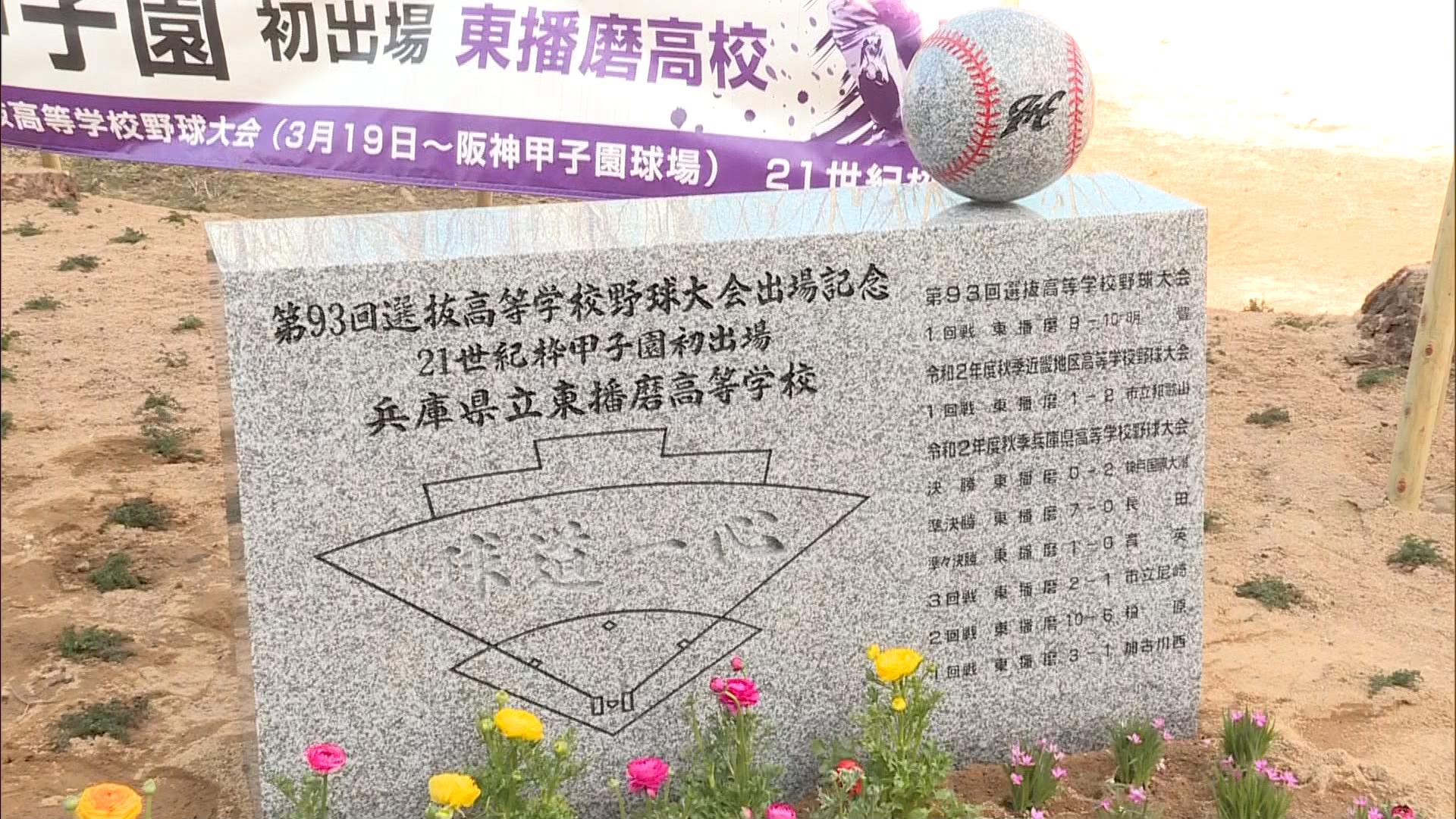 去年春の選抜高校野球大会に初出場した県立東播磨高校に記念碑が完成し、2月22日、除幕式が行われました。