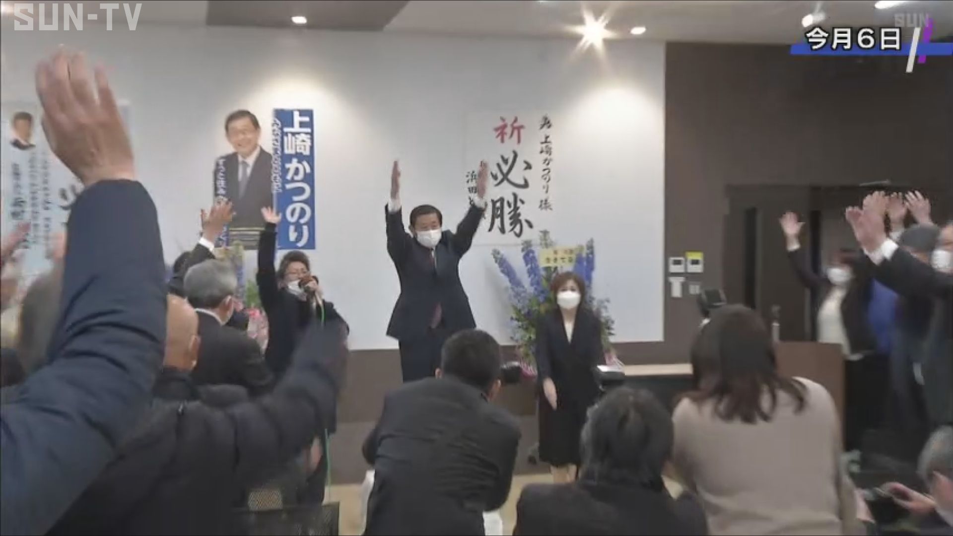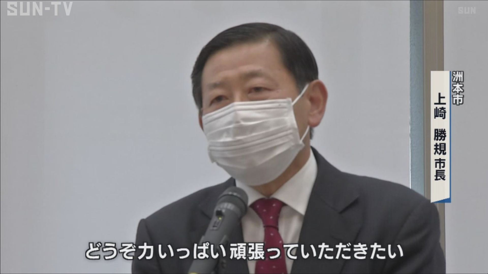 新人3人による戦いとなった3月6日の洲本市長選では、元副市長で、市の職員として40年間行政に携わった上崎市長が、特産品のブランド化による地域活性化や、中学生までの子ども1人につき年10万円の支給などを公約に掲げ、9892票を獲得して初当選。 3月22日は、職員の前で「力を合わせて洲本市を盛り上げていきたい」と抱負を語りました。