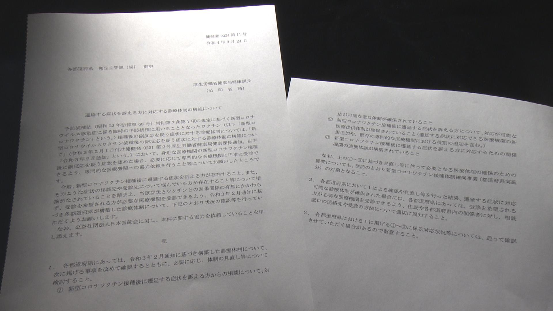 厚生労働省は3月24日、全国の都道府県に対し新型コロナワクチンを接種後、長期間にわたる体調不良に悩む患者のため、相談窓口を整えること。因果関係の有無にかかわらず受診できる医療体制を整えて、情報を周知するよう求める通知を出しました。