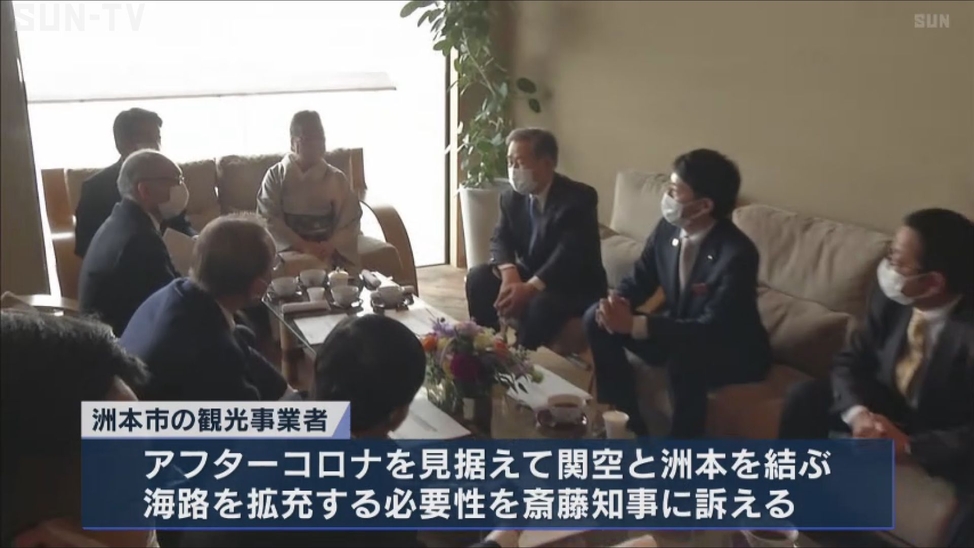 洲本温泉がある洲本市は、観光業が地場産業として大きな割合を占めていますが、新型コロナウイルスの影響で休業を余儀なくされるなど大きな打撃を受けたホテルや旅館も少なくありません。そのため、洲本市の観光事業者は斎藤知事にアフターコロナを見据えて関空と洲本を結ぶ海路を拡充する必要性を訴えていました。