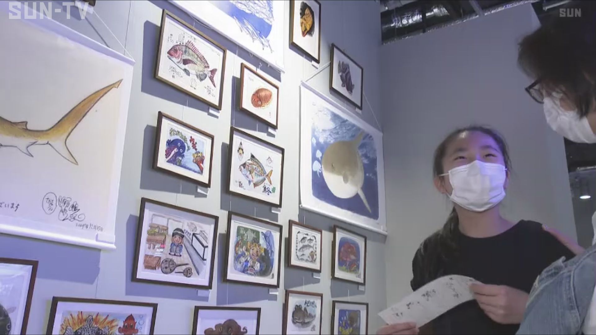 神戸市中央区の水族館「アトア」では、タレントのさかなクンが描いたイラストを紹介する企画展が開かれています。
