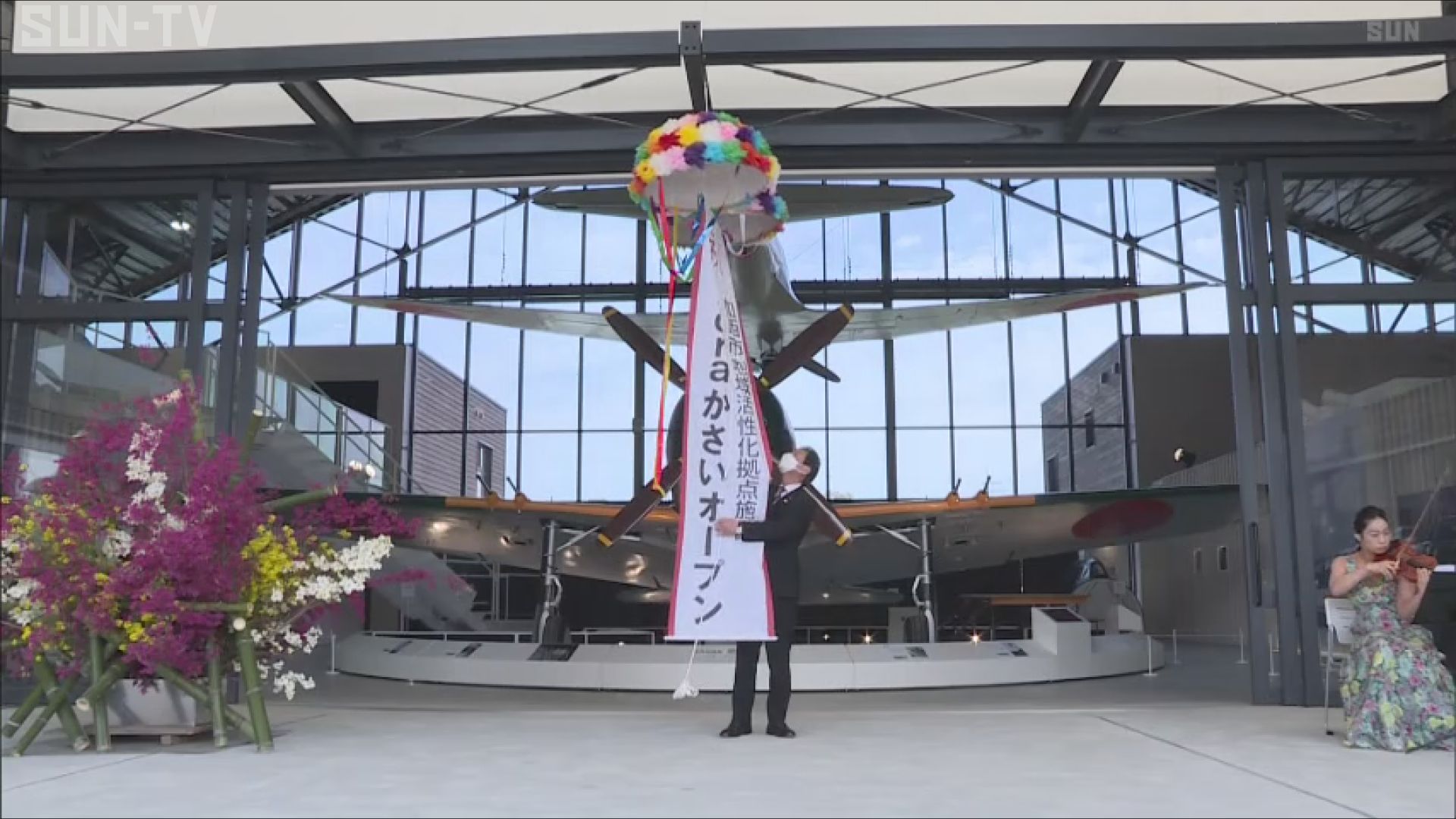 加西市が旧日本海軍の鶉野飛行場跡(うずらのひこうじょうあと)に建設していた平和学習施設「sora(そら)かさい」が完成し、18日、オープンしました。 「soraかさい」は、太平洋戦争中に使用された戦闘機の実物大の模型などが展示された、平和について学べる施設です。