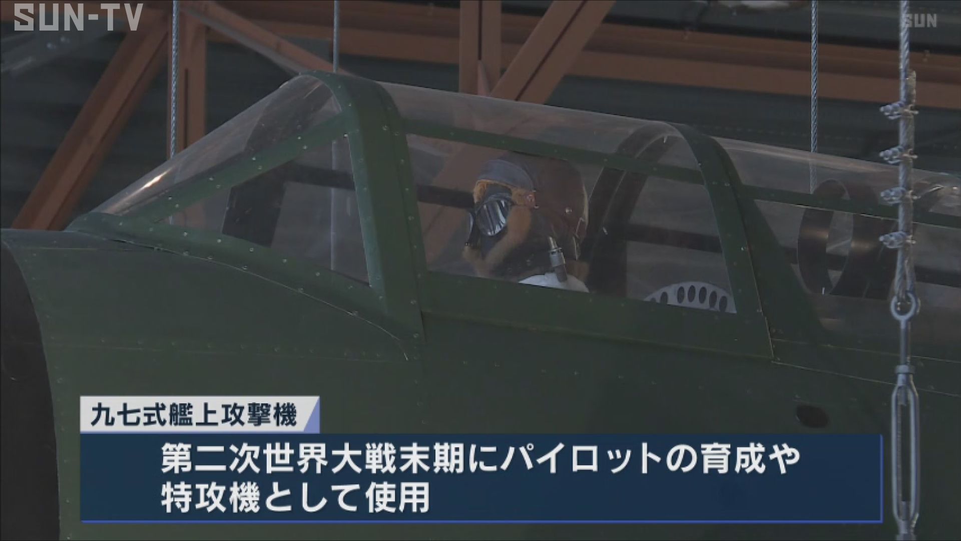 また、吊り下げられた「九七式(きゅうななしき)艦上攻撃機」は、第二次世界大戦末期にパイロットの養成のほか特攻機としても使用されていました。