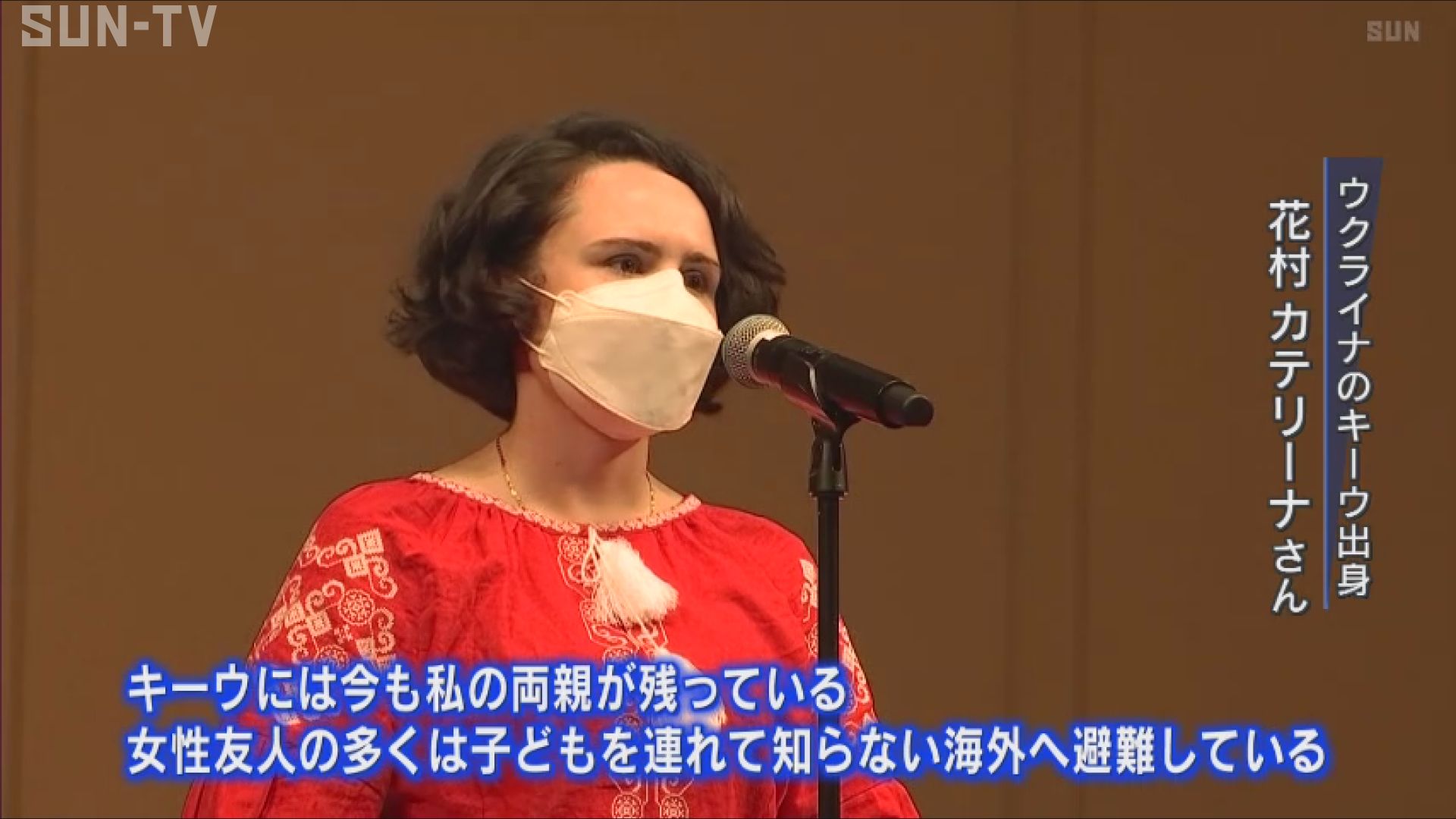 また、ウクライナのキーウ出身で臨床心理士の資格を持ち、淡路市の関西看護医療大学で教員として働く花村カテリーナさんがスピーチを行い、「一刻も早く平和が実現してほしいと」切実に訴えました。