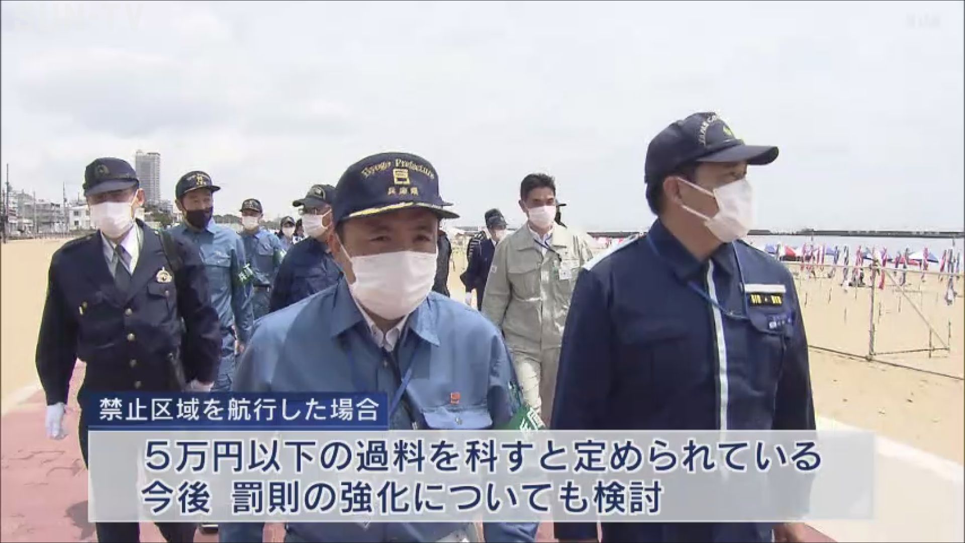 禁止区域を航行した場合5万円以下の過料を科すと定められていますが、神戸市は、今後罰則の強化についても検討していくとしています。