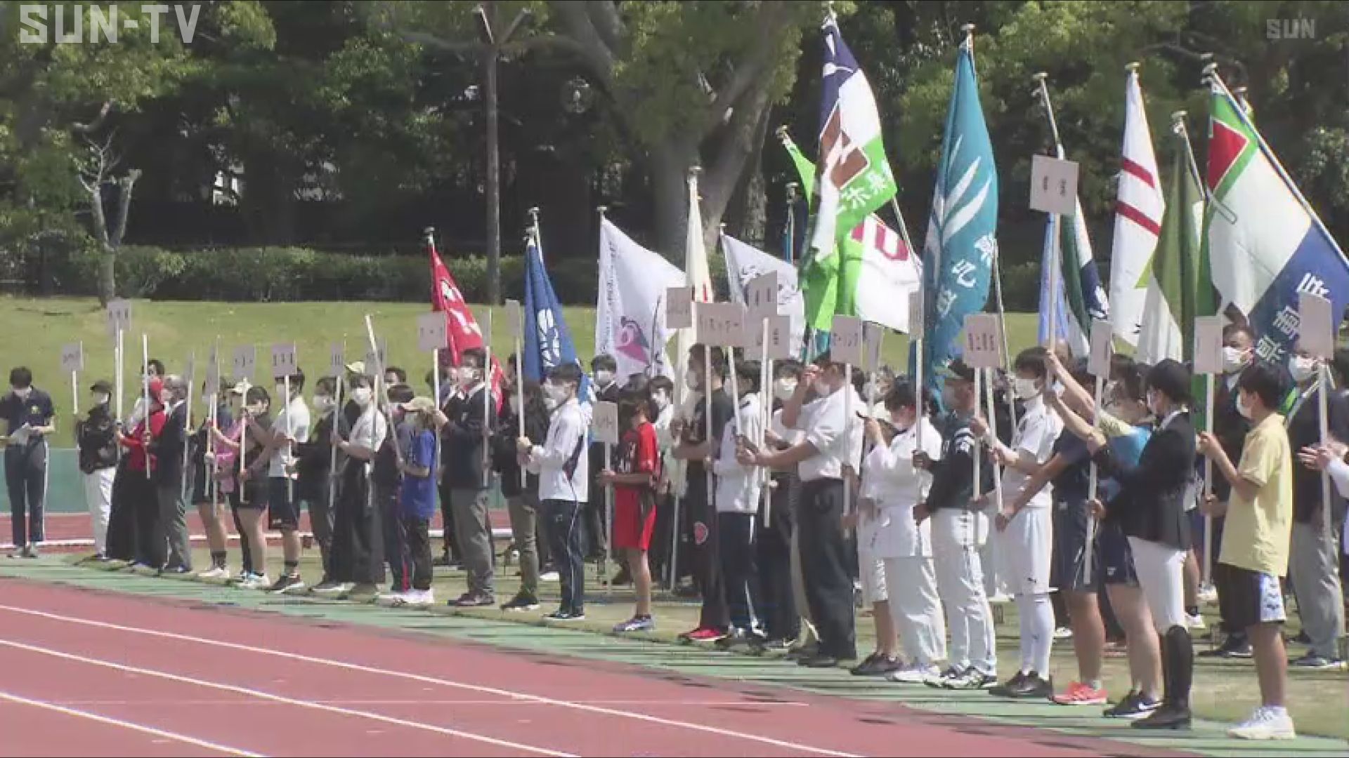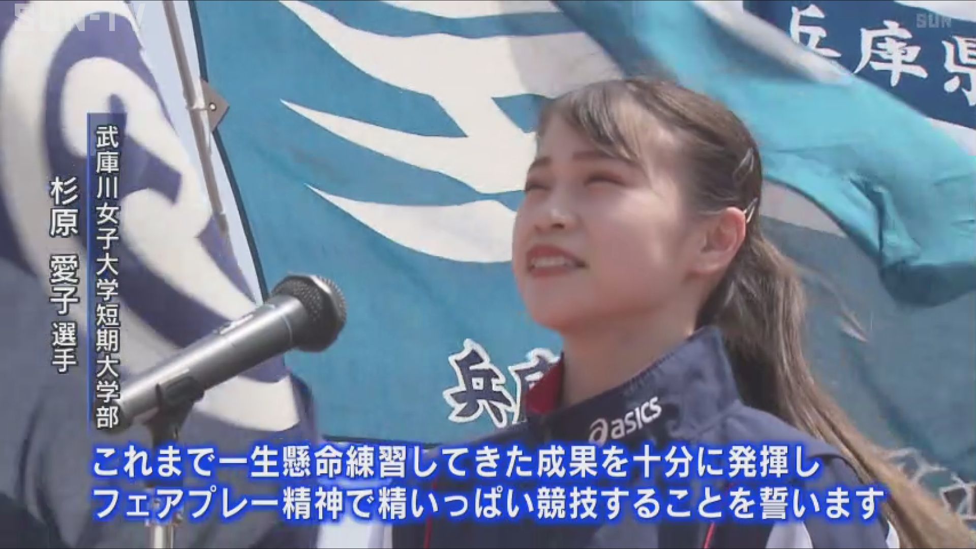 式では、選手らが道着やユニホームなどで行進したあと選手を代表して2021年の東京オリンピックで、体操女子団体5位入賞を果たした杉原愛子選手が宣誓しました。
