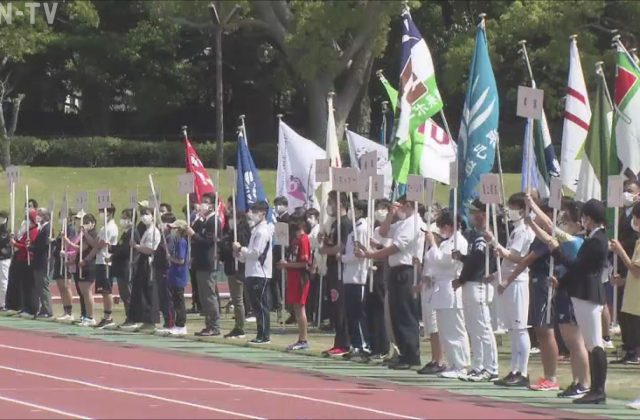 明石市の陸上競技場では、第76回兵庫県民スポーツ大会の開会式が開かれ、58の競技団体の選手ら合わせておよそ1000人が参加しました。
