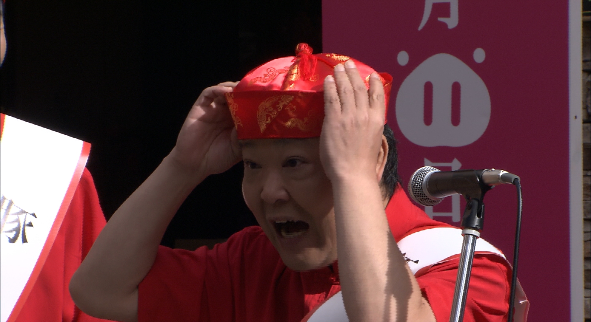 「KOBE豚饅サミット」で大使を務め「くるりんぱ」を披露する上島竜兵さん