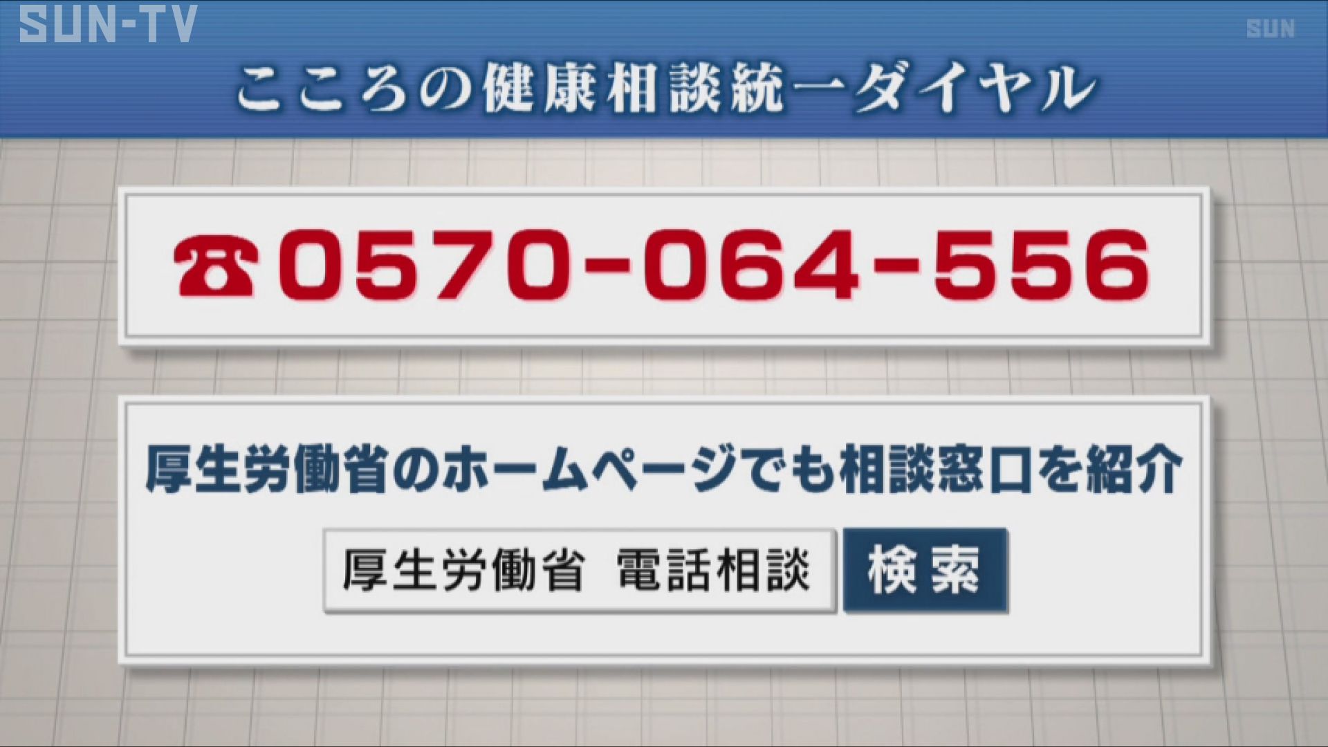 今、悩みや不安を抱えているという方は、「こころの健康相談統一ダイヤル」(0570-064-556)があります。