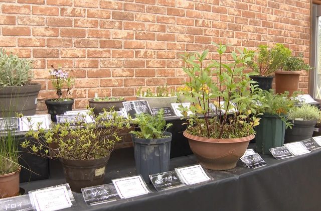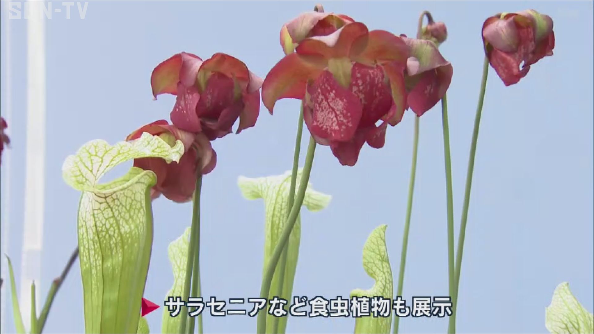 会場には、乾いた草原に生え、白い花を咲かせるタカサゴソウや、川岸の湿った草地に生え、花が淡い青紫のチョウジソウ。 去年、兵庫県内では初めて姫路の海岸近くで発見されたニラバランなど、絶滅危惧種の植物およそ150種が展示されています。また、花を咲かせたサラセニアなど食虫植物の展示も行われています。