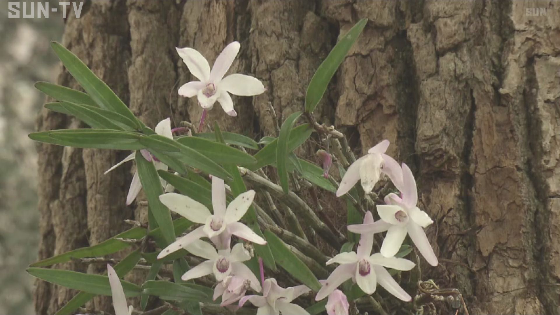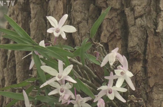 木の上に咲く可憐な花。 岩の表面や大木に生える小型のラン「セッコク」です。 「セッコク」は乱獲などで数が減ったため採取することが禁止されていて、県のレッドデータブックのAランクに指定されています。