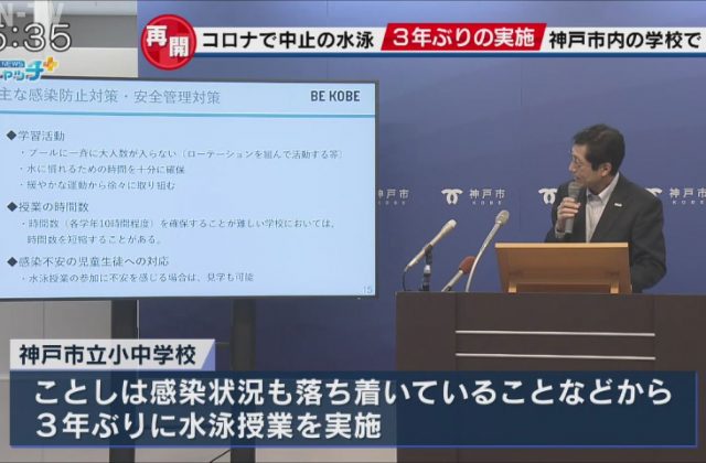 神戸市教育委員会は19日、新型コロナウイルスの感染防止のため実施できずにいた小中学校の水泳の授業をことし、3年ぶりに再開すると発表しました。