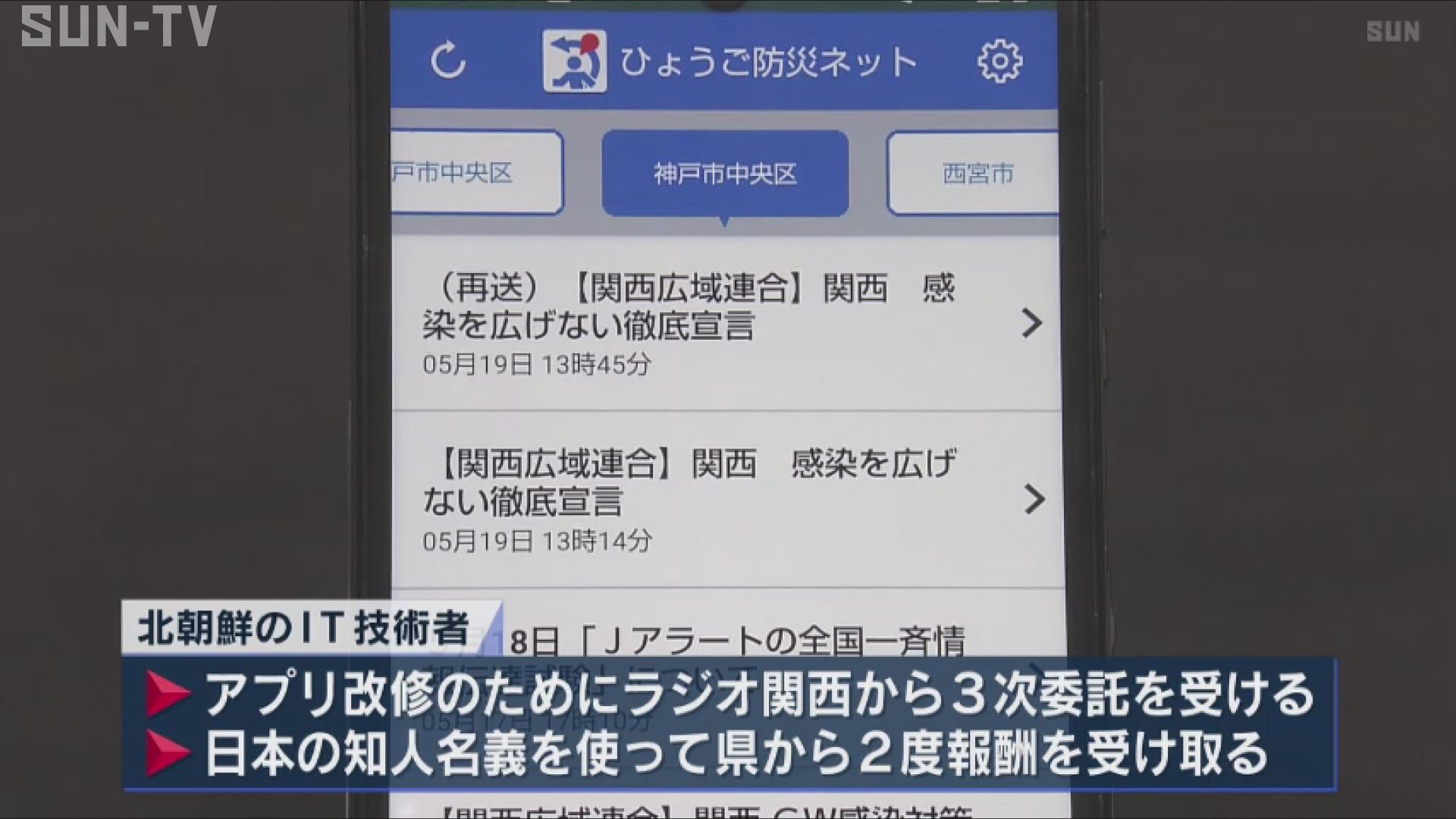 兵庫県の防災アプリの運用に北朝鮮のIT技術者が携わっていたことが分かりました。