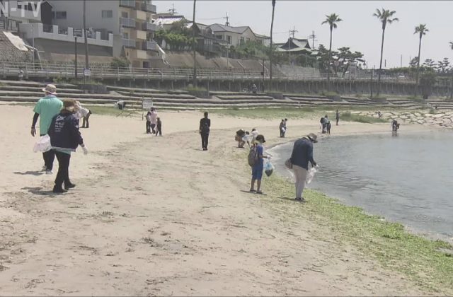 この活動は県や明石市などでつくる「ひょうご豊かな海発信プロジェクト協議会」などが主催したもので明石市の江井ヶ島海岸では海岸の清掃を全国に呼び掛ける旗上げ式が行われました。