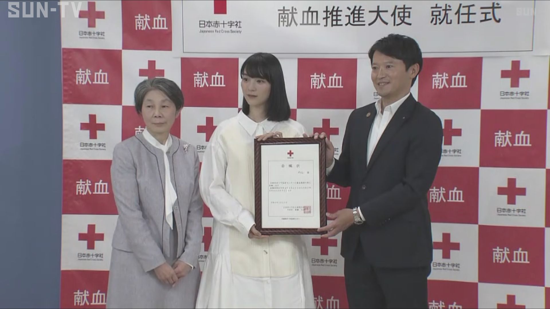 若い世代に献血に興味を持ってもらおうと、兵庫県出身で俳優ののんさんが23日、献血推進大使に就任し、献血の必要性をPRしました。