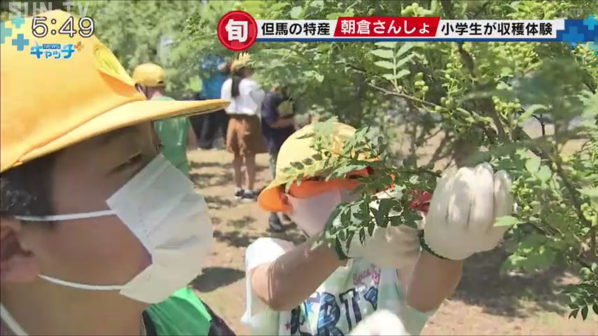 但馬の特産品「朝倉さんしょ」が収穫時期を迎え、23日、養父市で地元の小学生が収穫を体験しました。