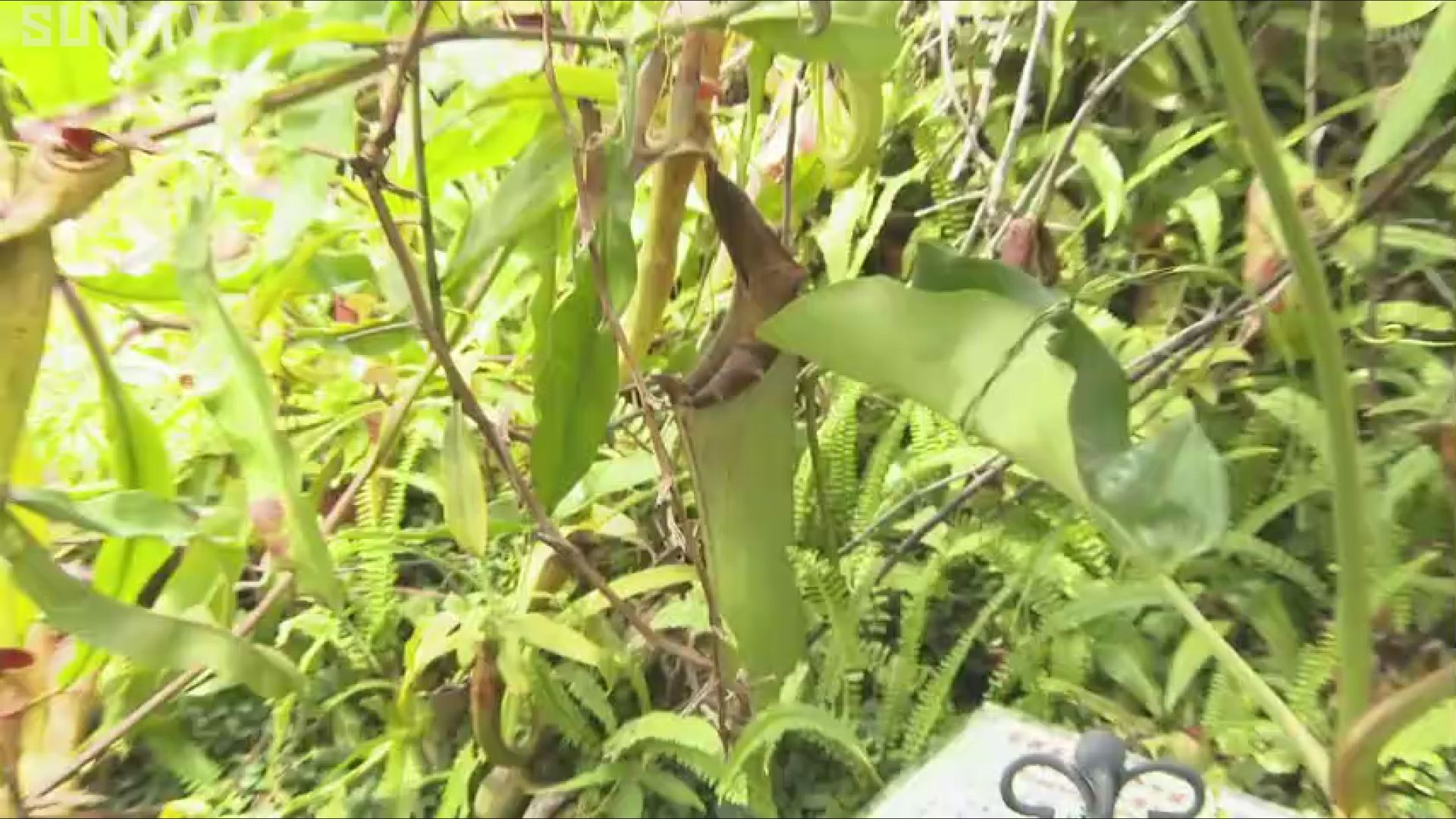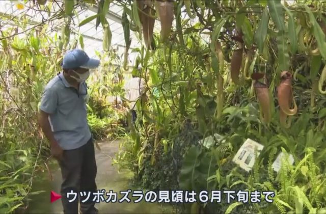 県立フラワーセンターの世界最大級のウツボカズラの見頃は、6月下旬までということです。