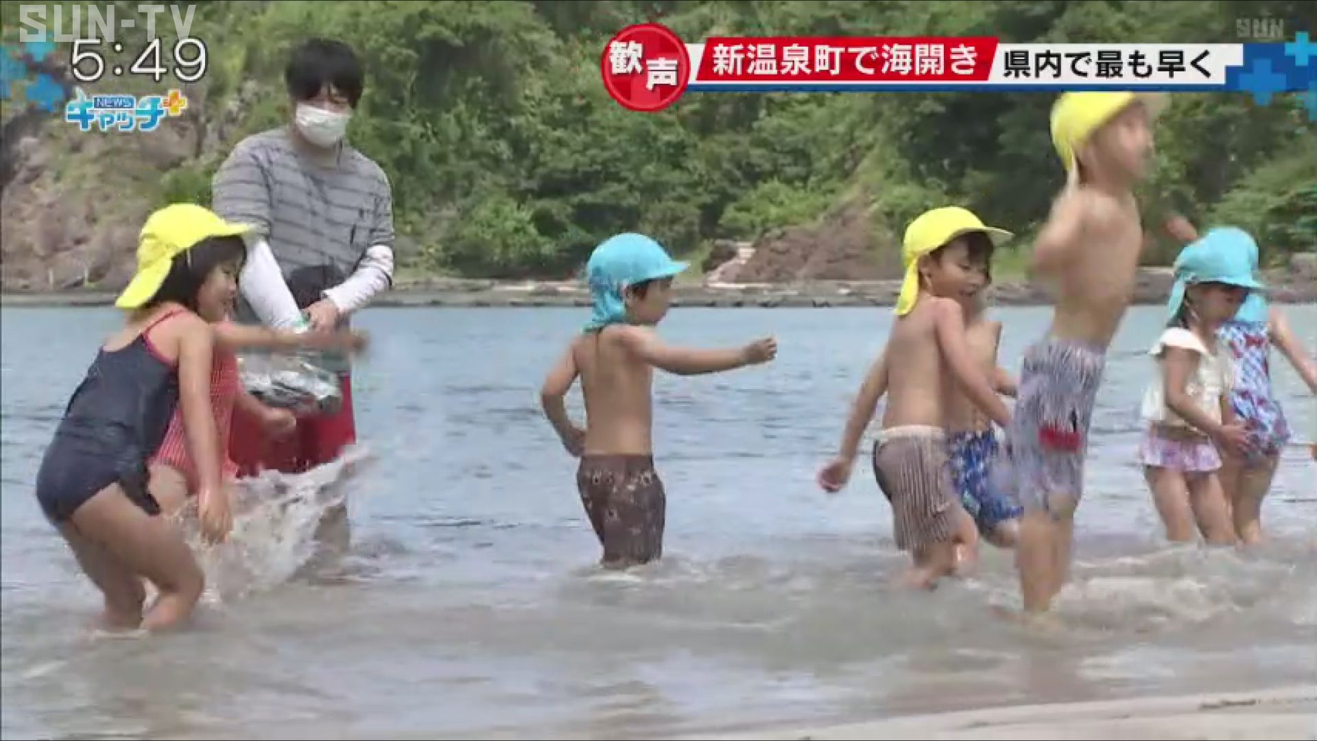 兵庫県新温泉町では県内で最も早い海開きが行われ、待ちわびた地元の子どもたちから歓声が上がっていました。