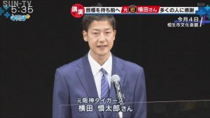 元阪神タイガースの選手で、2019年に病気を理由に現役を引退した横田慎太郎さんが兵庫県相生市で講演し、目標を持って前へ進むことの大切さを訴えました。