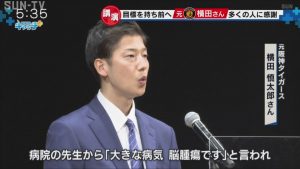 「病院の先生から『大きな病気、脳腫瘍です』と言われ、その二言目に『横田君、一回野球のことは忘れてください』と言われ、野球のことを忘れなければいけない、そんなに大きな病気なんだと思い、頭が真っ白になりました」
