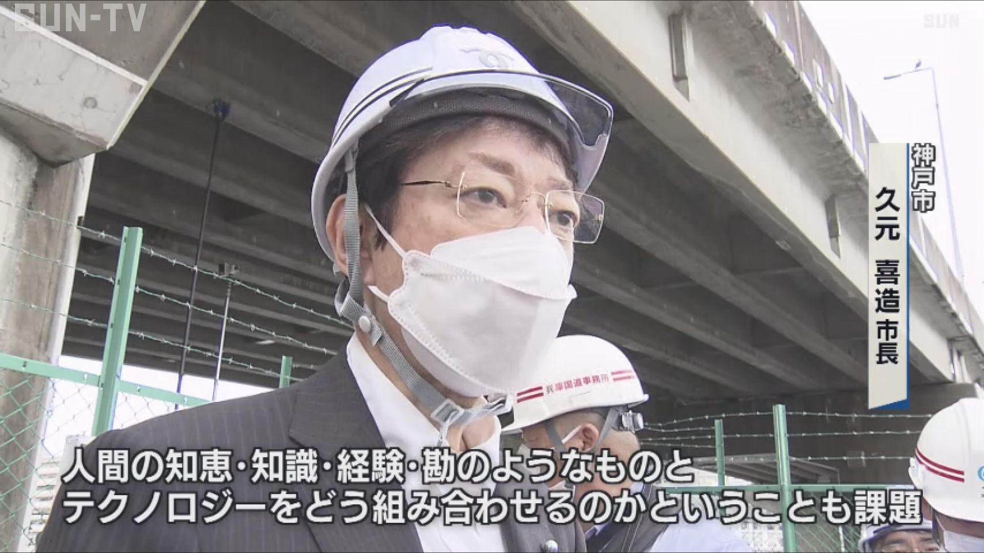 兵庫県神戸市兵庫区の住吉橋で公開されたデモンストレーションには、国土交通省や市の職員らおよそ50人が参加、久元市長も新たな技術を体験しました。