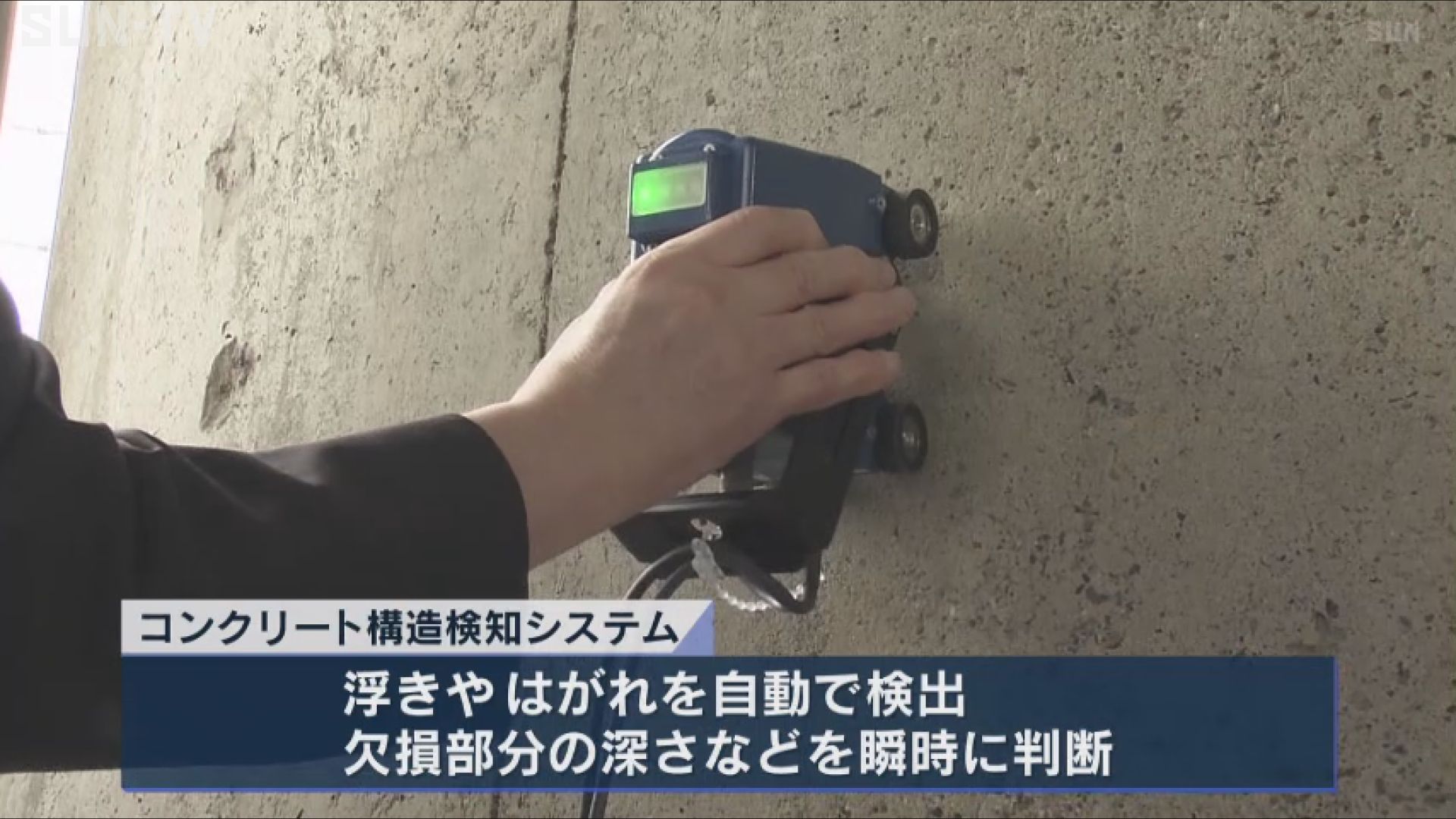 コンクリートの構造を検知するシステムでは、浮きやはがれを自動で検出し、欠損部分の深さなどを瞬時に判断します。