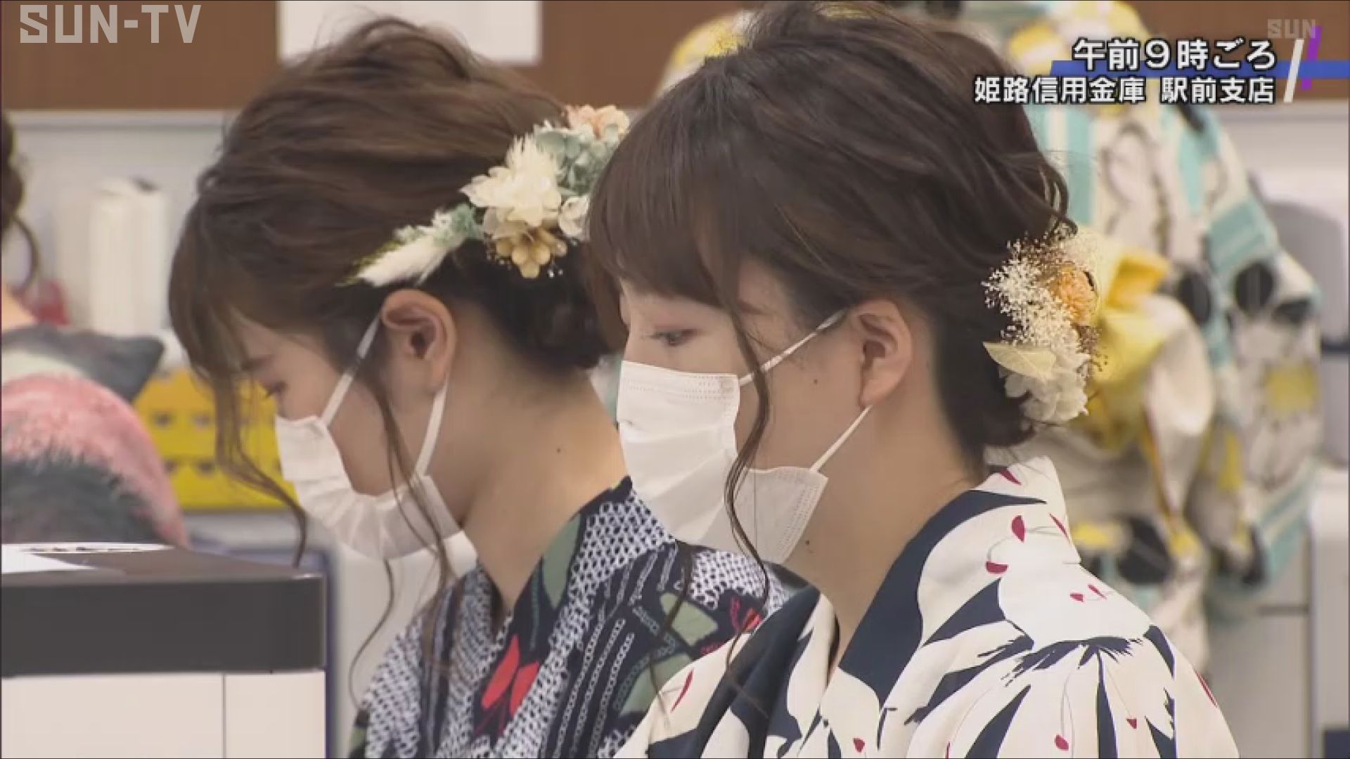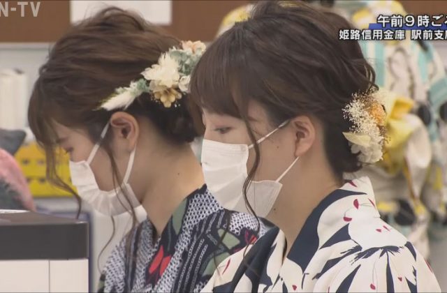 姫路信用金庫 浴衣で接客 涼を呼ぶ 2022.06.1712:08 地域・まち 姫路市にある信用金庫では、職員たちが浴衣姿で業務にあたり、涼しげな雰囲気を演出しています。 浴衣姿の職員が出迎えてくれるのは姫路信用金庫の駅前支店です。浴衣姿での接客は、30年以上続く夏の恒例行事です。 例年、6月に開催される「姫路ゆかたまつり」にあわせて実施していますが、新型コロナの影響で祭りは3年連続で中止に。それでも浴衣姿を楽しみにしている客のため、一日限定での実施となりました。 17日の姫路の予想最高気温は28度となっていますが、店内は華やかで涼しげな雰囲気に包まれていました。 #姫路信用金庫 #浴衣 記事のギャラリーを見る ニュース一覧へ戻る