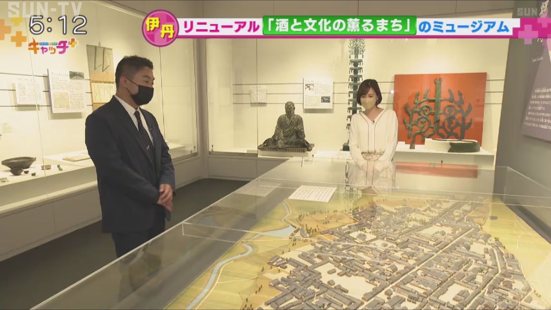 (館長)そうですね、こちらは伊丹郷町という昔の街並みを精巧に再現したジオラマで、江戸時代に伊丹が一番隆盛を極めていた時代のものです」