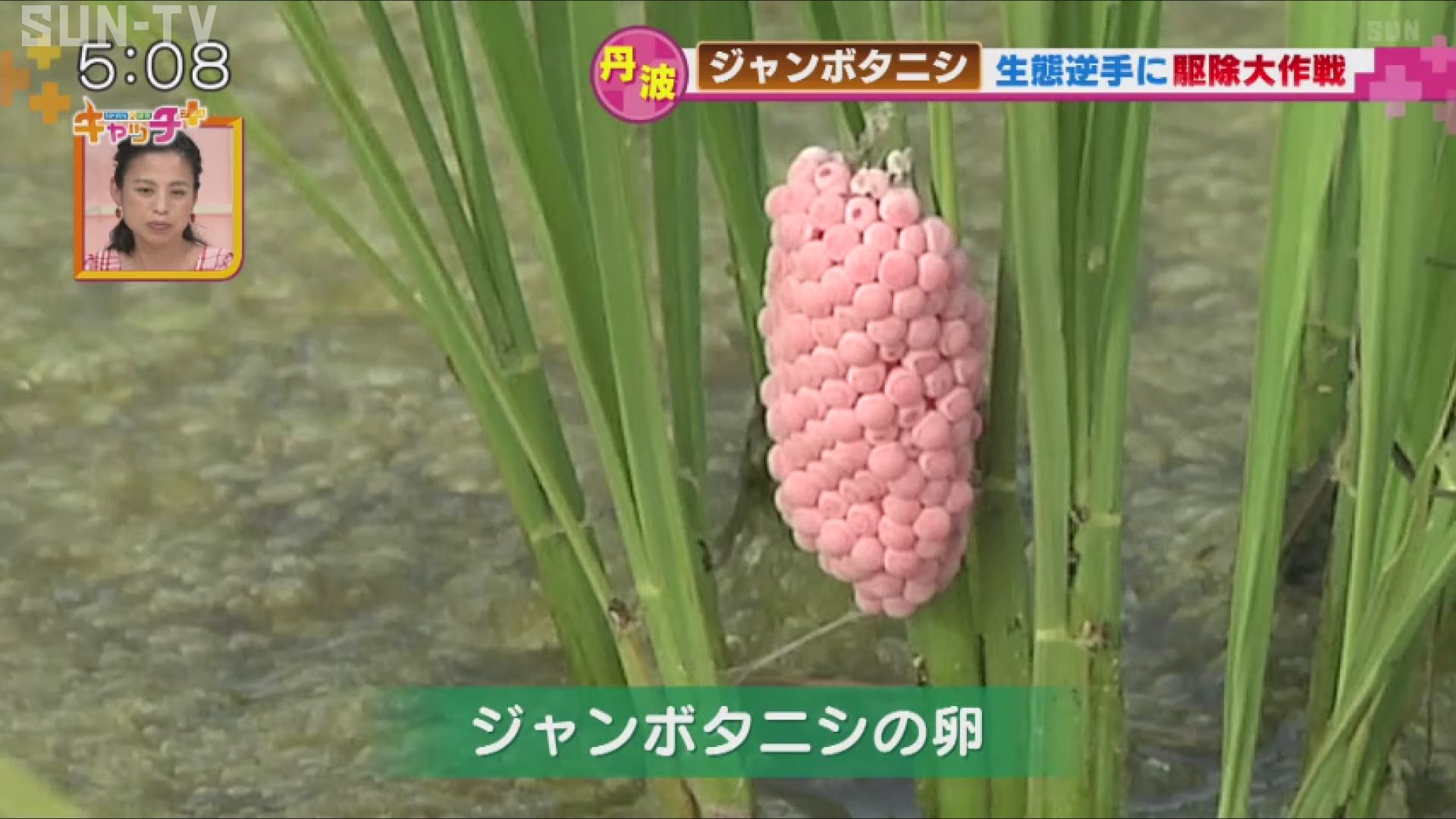 「ジャンボタニシは外来生物で南米から入ってきた生物になっています。稲の若い葉っぱを全部食べてしまうので、大変厄介なものになります。」