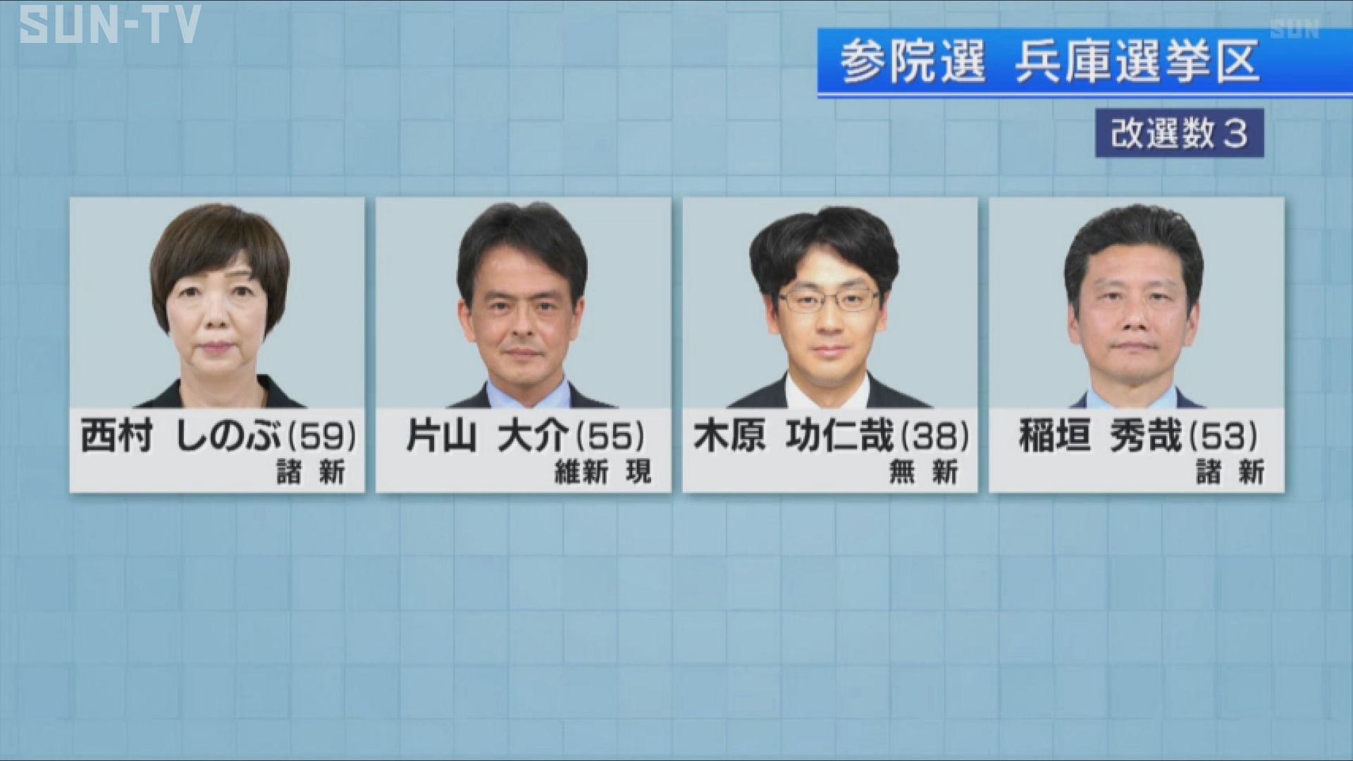 第26回参議院選挙は22日公示され、兵庫選挙区には、これまでに県内の参院選としては過去最多となる現職と新人合わせて13人が立候補しています。