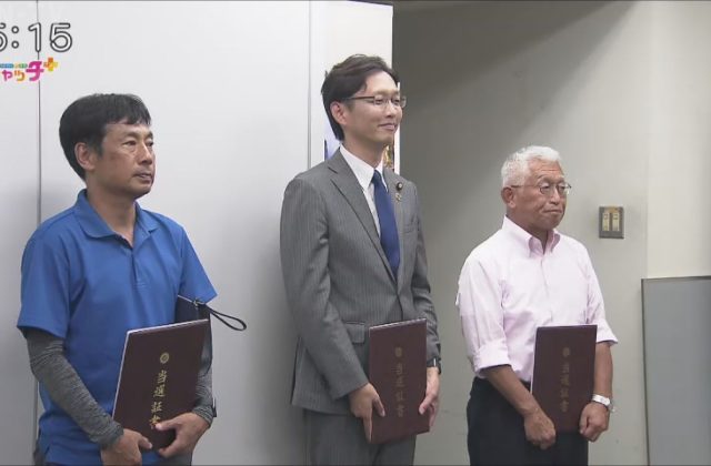 届け出を終えた候補者は、選挙事務所の表札や街頭演説用の旗など選挙運動の「七つ道具」を受け取り、街へと繰り出していきました。