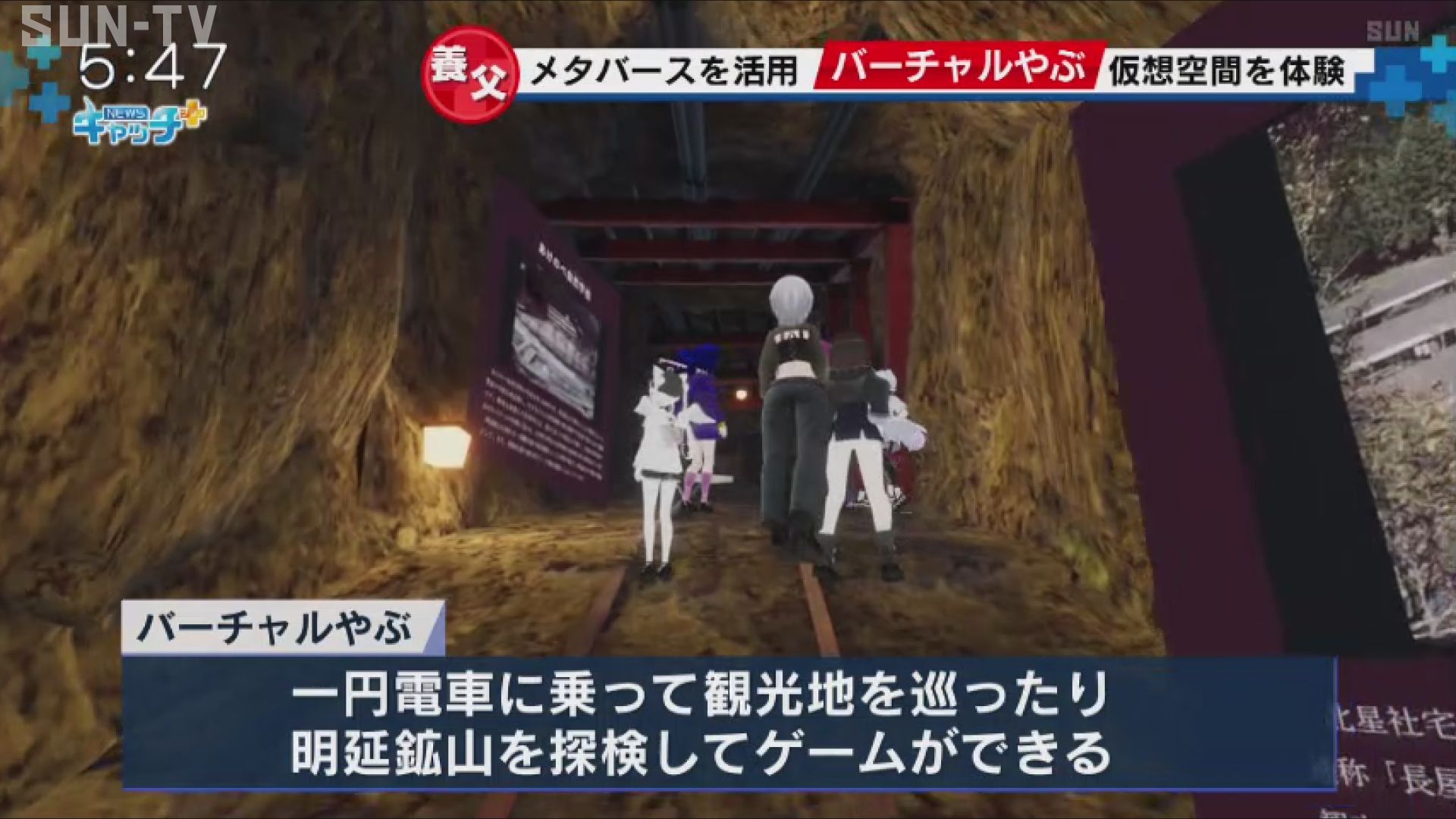 「バーチャルやぶ」には、養父市の代表的な観光地の天滝やハチ高原などが再現され、訪問した人は自分のアバターを作り、一円電車に乗って観光地を巡ったり、明延鉱山を探検してゲームができます。さらに、さまざまな場面に登場する吉本芸人のネタも楽しめるということです。