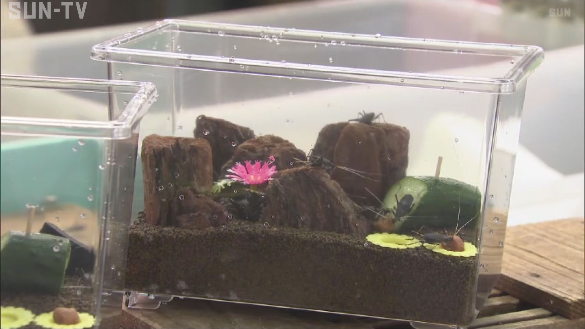 作業場では、成長させたスズムシの雄と雌を選別する作業が行われていて、9月ごろまでにおよそ8万匹が出荷されるということです。