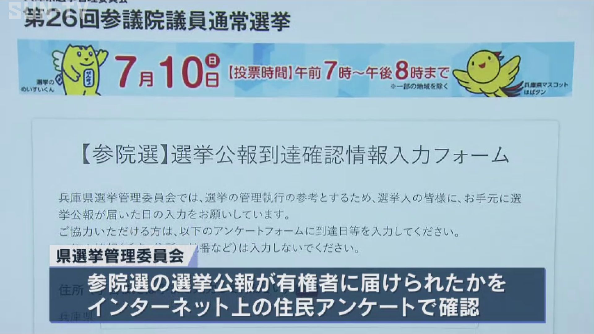 7月10日投開票の参院選で選挙公報が有権者に配布されたことを確認するため、兵庫県選挙管理委員会はインターネットを利用したアンケートを導入しました。