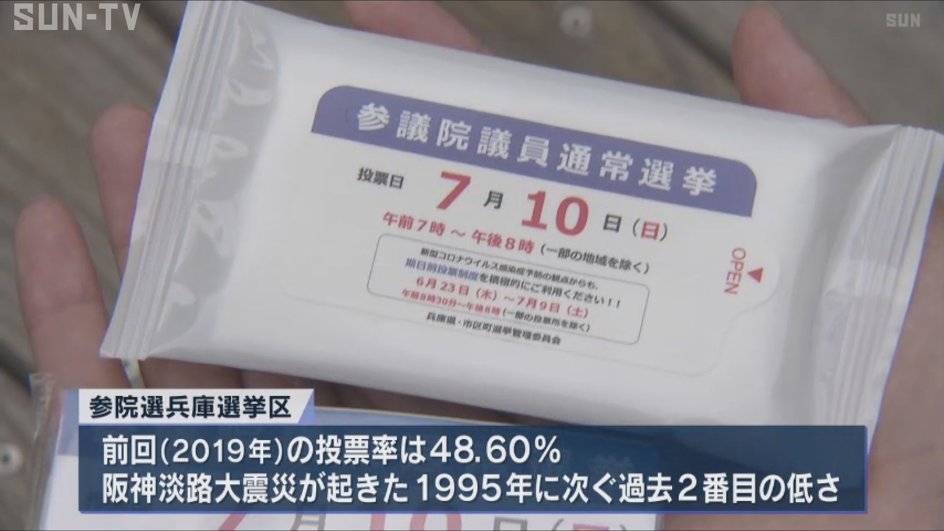 参院選 街頭啓発で投票呼びかけ 2022.07.0812:33 選挙 参議院選挙の投開票日を10日に控え、JR元町駅前で8日、投票の呼び掛けが行われました。 兵庫県選挙管理委員会は、7月10日にひとりでも多くの人に投票してもらおうと、朝の通勤・通学の時間帯にJR元町駅前で啓発活動を行いました。 県選管によりますと、参院選兵庫選挙区の前回の投票率は48・60%で、阪神淡路大震災が起きた1995年の参院選に次ぐ過去2番目の低さとなるなど、若年層を中心とした投票率の向上が課題となっています。 参院選兵庫選挙区では過去最多となる13人が立候補しています。 #参議院選挙 #啓発活動 記事のギャラリーを見る ニュース一覧へ戻る