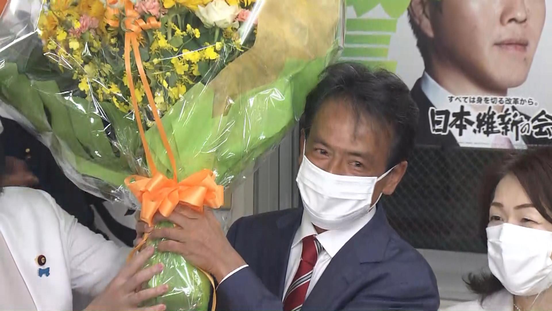 日本維新の会・現職の片山大介さん(55)、自民党・現職の末松信介さん(66)、公明党・現職の伊藤孝江さん(54)で、片山さんが末松さんにおよそ9万票の差をつけてトップで再選を果たしました。