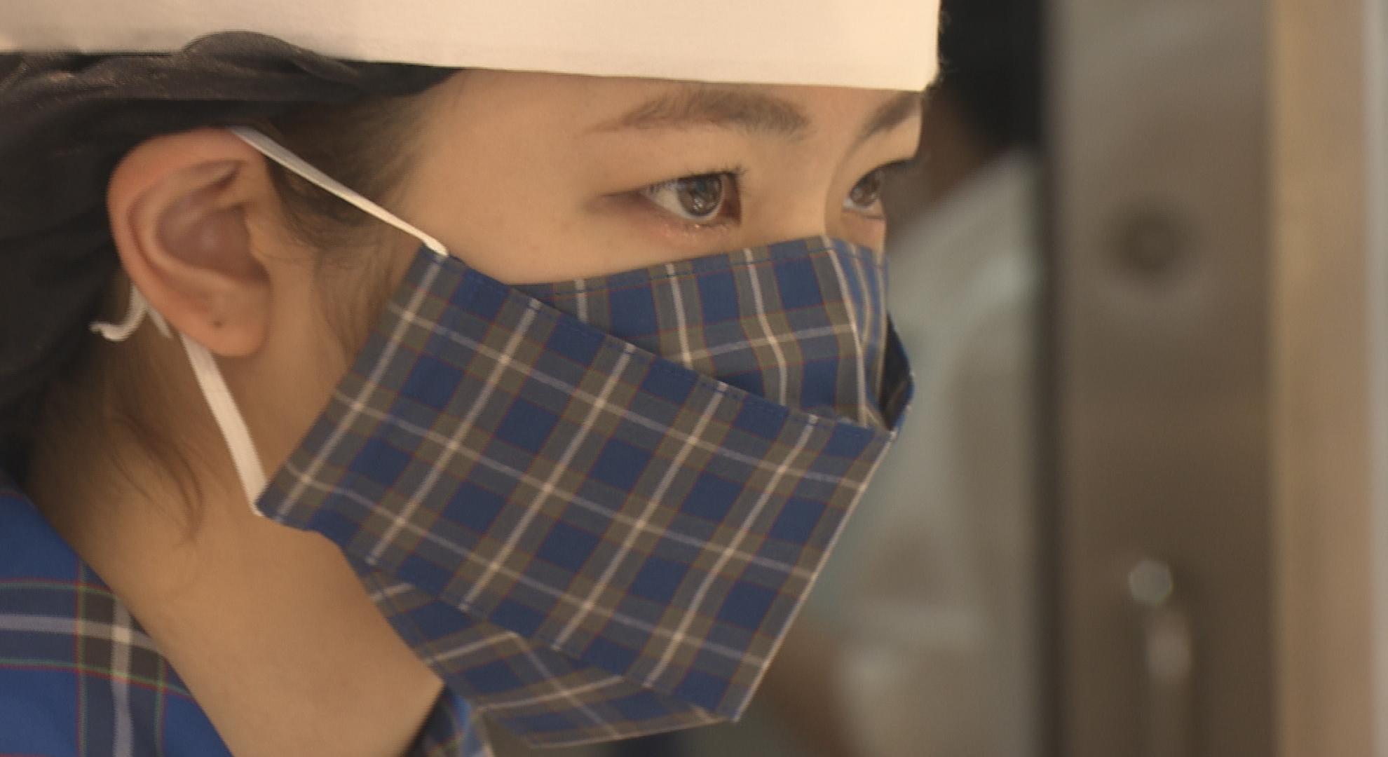 港町・神戸をイメージしたチェック柄、「神戸タータン」をPRしようと、神戸市にある、調理製菓専門学校が運営するカフェで、「神戸タータン」柄のネクタイやマスクを着けた学生が接客にあたりました。