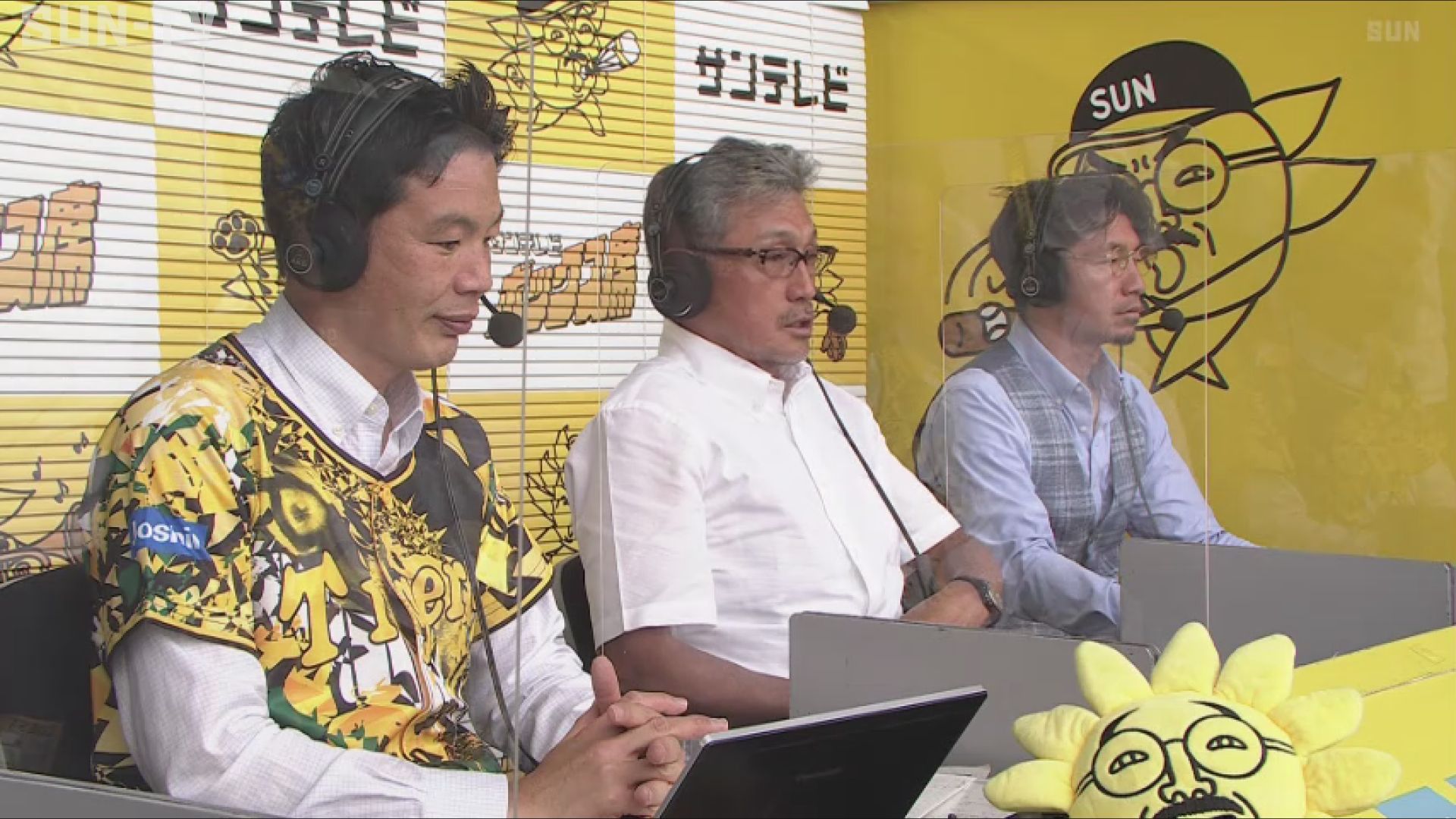 サンテレビ ボックス席 (左から)湯浅明彦アナウンサー、真弓明信氏、鳥谷敬氏/甲子園球場