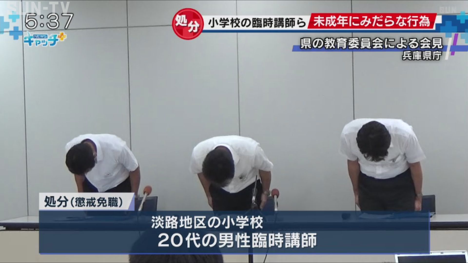 兵庫県教育委員会は18歳未満の女子生徒とみだらな行為をしたなどとして、淡路地区の公立小学校に勤める20代の男性臨時講師を懲戒免職処分としました。