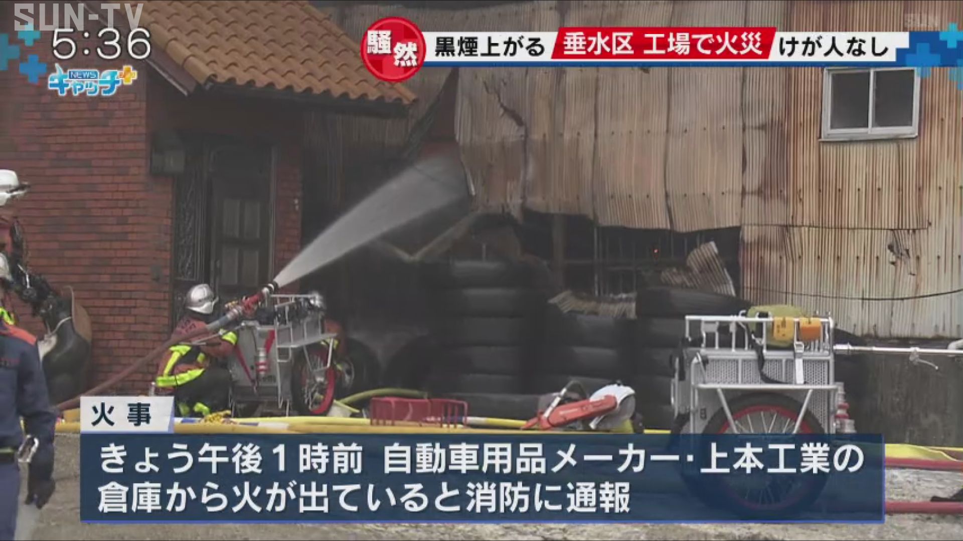 7月21日午後1時前、神戸市垂水区下畑町にある自動車用品メーカー、上本工業の倉庫から火が出ていると消防に通報がありました。