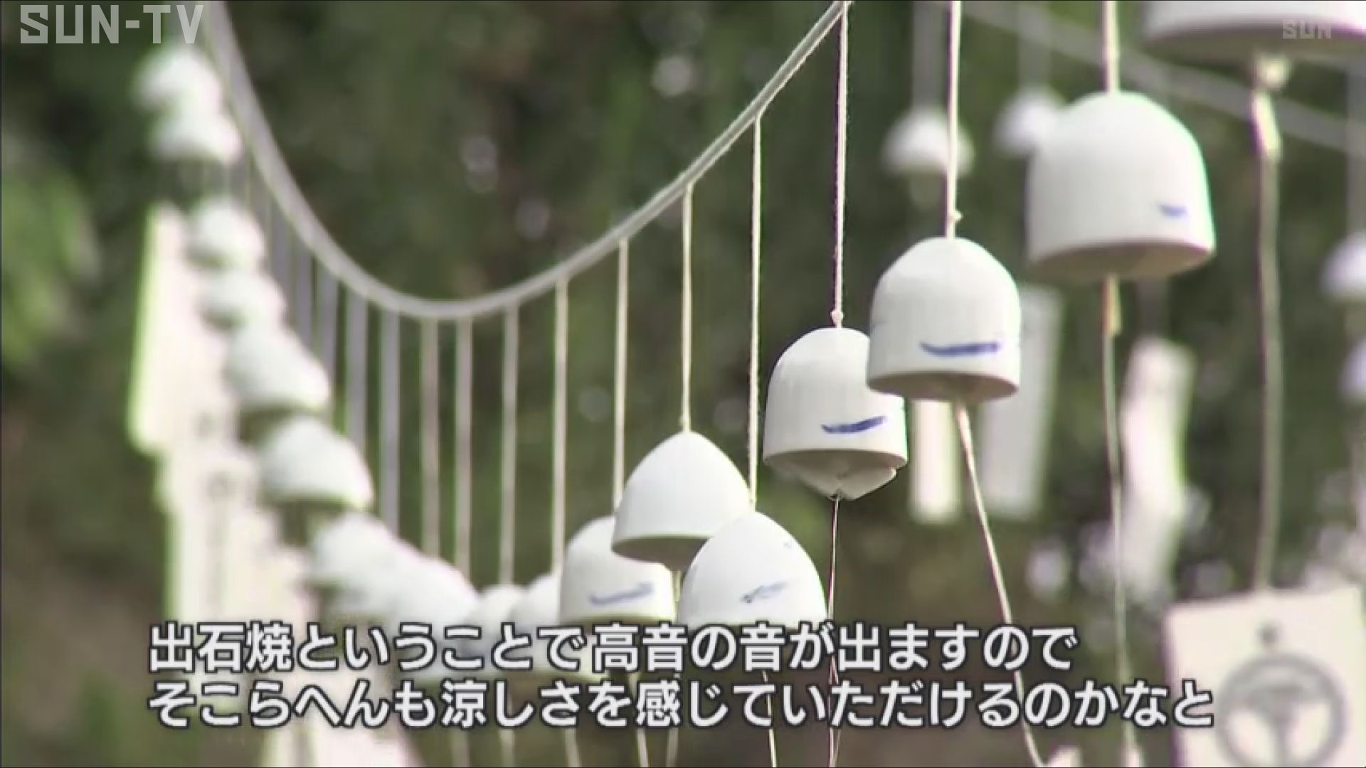 豊岡市出石町では、伝統工芸の出石焼の風鈴が飾られ、涼しげな音色を響かせています。